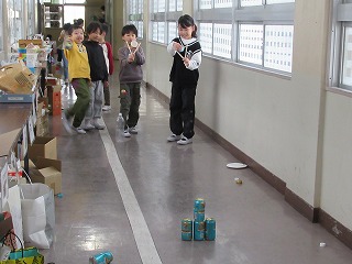 2年生は、生活科でおもちゃづくりに取り組んでいます。道具の調節をしたり、ルールを工夫したりして、どうやったら楽しめるおもちゃになるのかを考えていました。