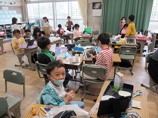 算数では、たし算カード、ひき算カードを使って、計算の練習をしました。計算がどんどん速くなってきています。