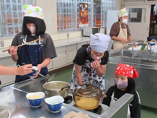 5年生が家庭科の調理実習で、ごはんとお味噌汁を作りました。