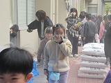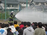 火災避難訓練を行いました。消防署の方に来ていただき、逃げるときは、姿勢を低くして移動することや熱さから守るためにハンカチを使用するとよいことなどを聞きました。その後は2グループに分かれて、消化器体験と煙体験を行いました。