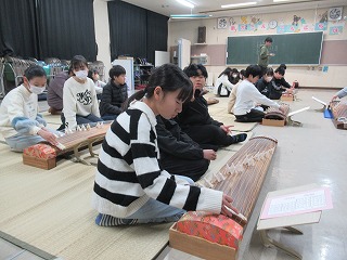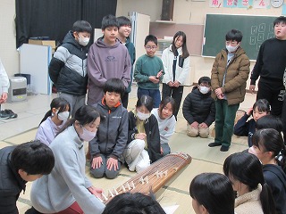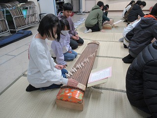 お琴と尺八の先生にお越しいただき、琴の体験をしたり、演奏を聞いたりしました。