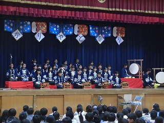 午前は、体育館で開会式とラリーがありました。お囃子の児童は、新しい法被を着て、すばらしい演奏を行いました。開会式の楽しい劇のおかげで、みんな笑顔でいっぱいになれました。